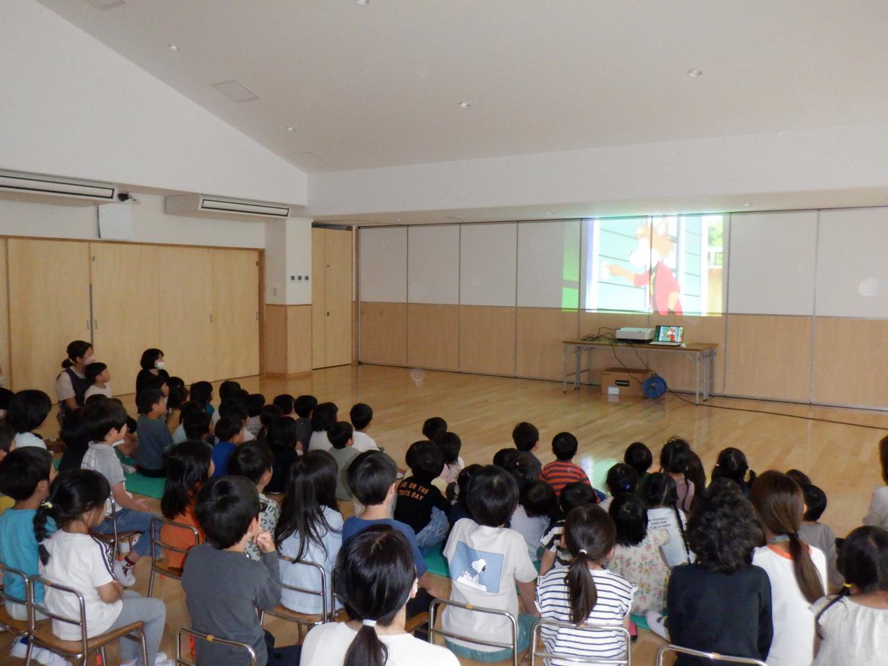 『車がいっぱい走っているから、しっかり手をつないであるこうね』というお母さんとの約束を破ってしまったうさぎさんが交通事故にあいそうになってしまったお話でした。子どもたちは真剣に見ながらも危険な場面では思わず「あ、あぶない💥‼」と、声を出してしまう姿もありました。