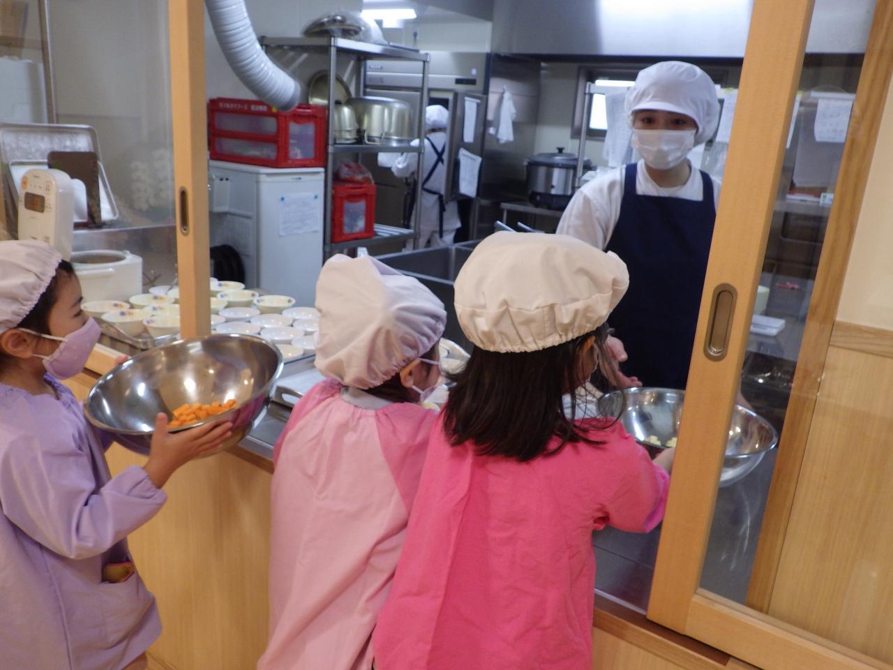 調理の先生に「おねがいします」と、調理室まで持って行きました。