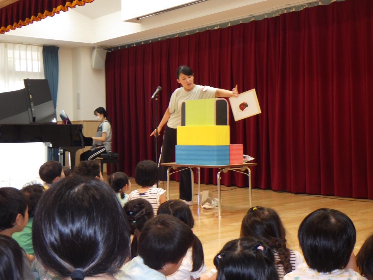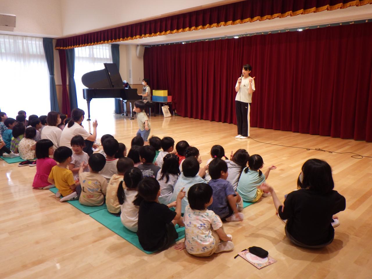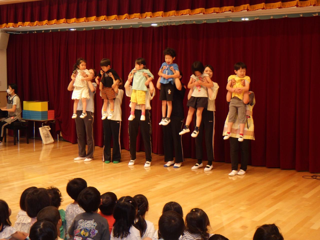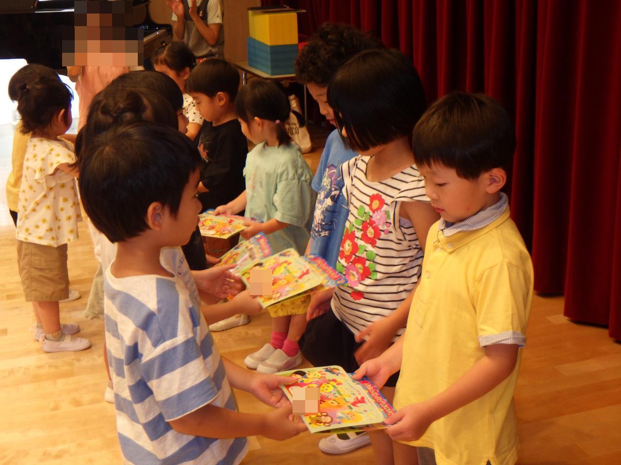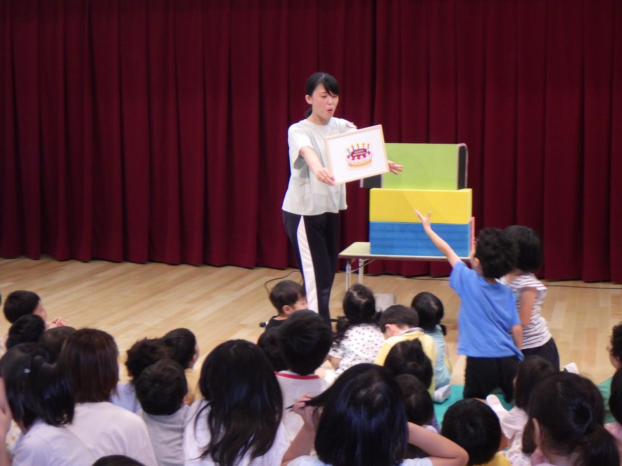 6/24(月)幼児クラスの6月のお誕生会💕を行いました。3歳児、4歳児、5歳児クラスの子どもたちがお遊戯室に集まり、お祝い✨をしました。