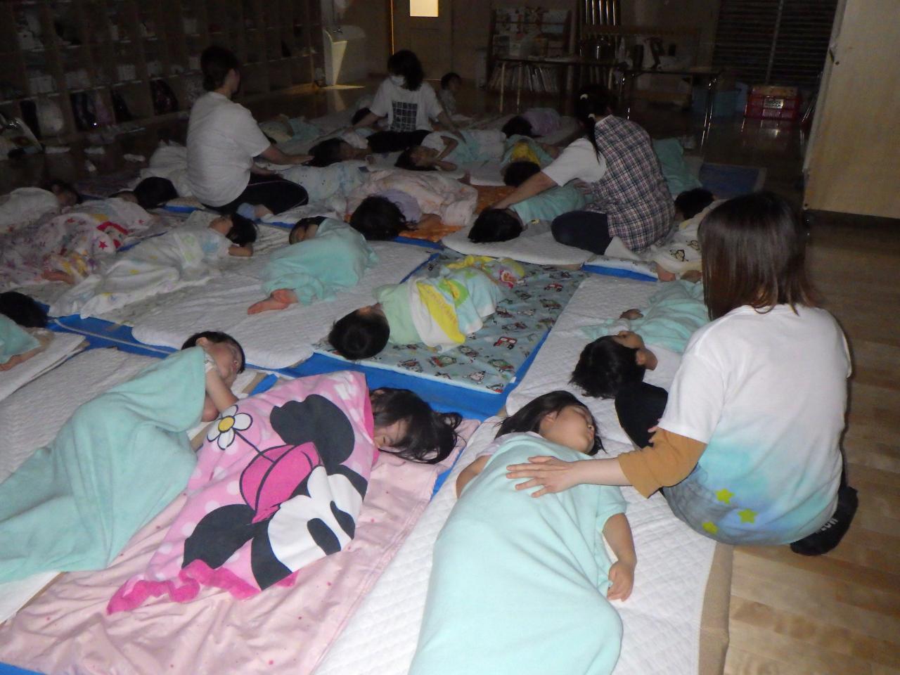 もうすぐお家の方のお迎えの時間です。ケガもなく、お友だちや先生たちと仲良く過ごす事ができました。楽しい思い出がいっぱいできましたね。「おとまりさいこう!」と、何回も子どもたちが言っていました。「もう一回したいな」という声もありました。