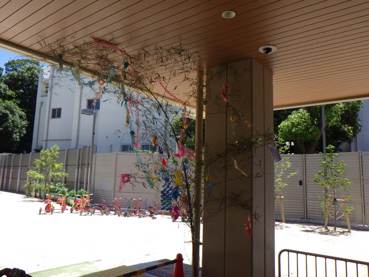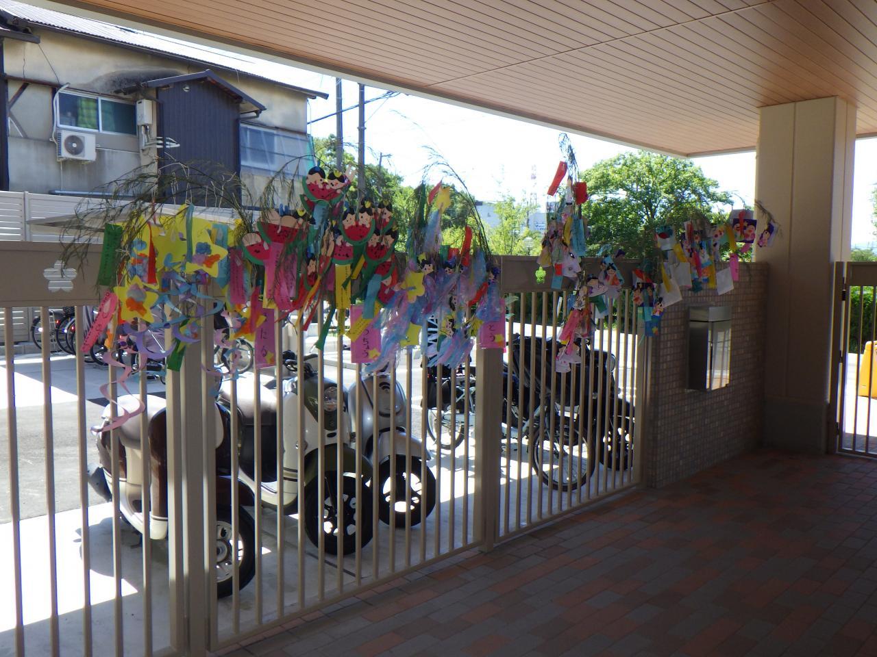 子どもたちの七夕飾りを笹に飾ると、風にゆれてとてもきれいでした。短冊に込められたお願い事がかなうとよいですね😀。