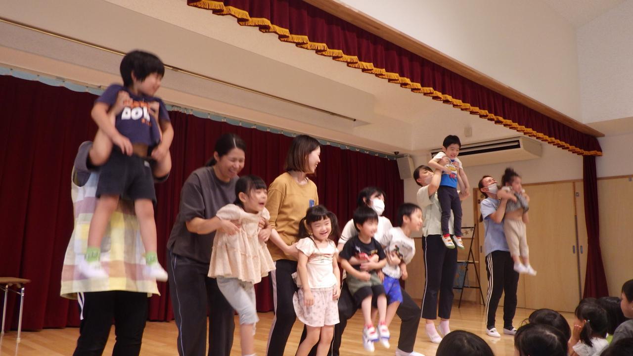 「おたんじょうびのうた」にあわせて♪「おめでとう❗」と、先生にだっこされました。