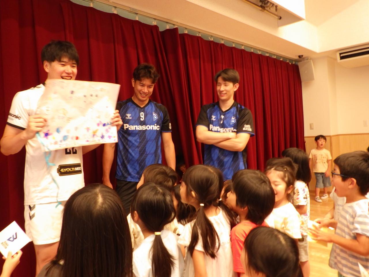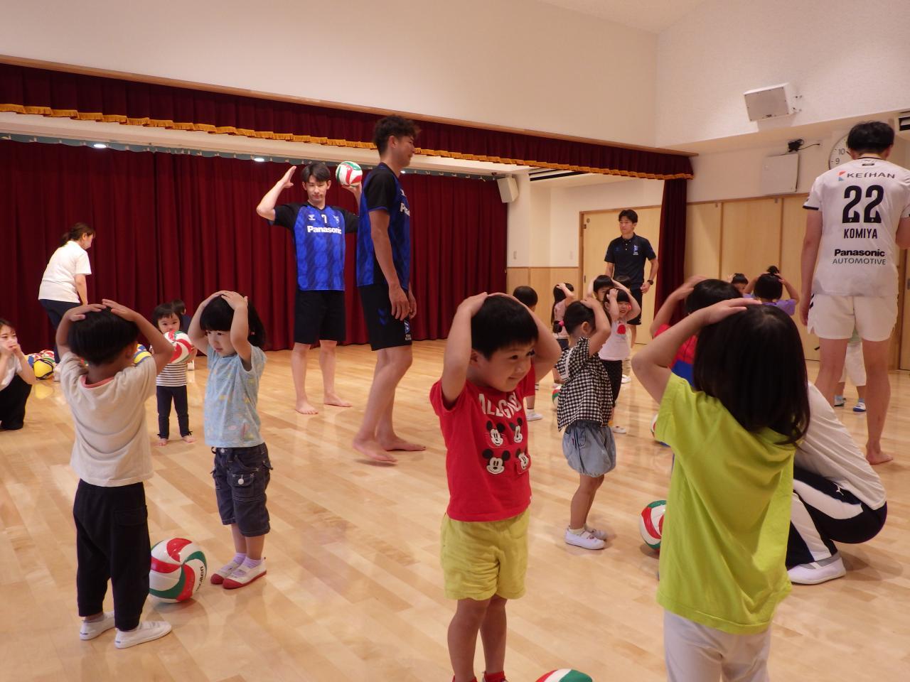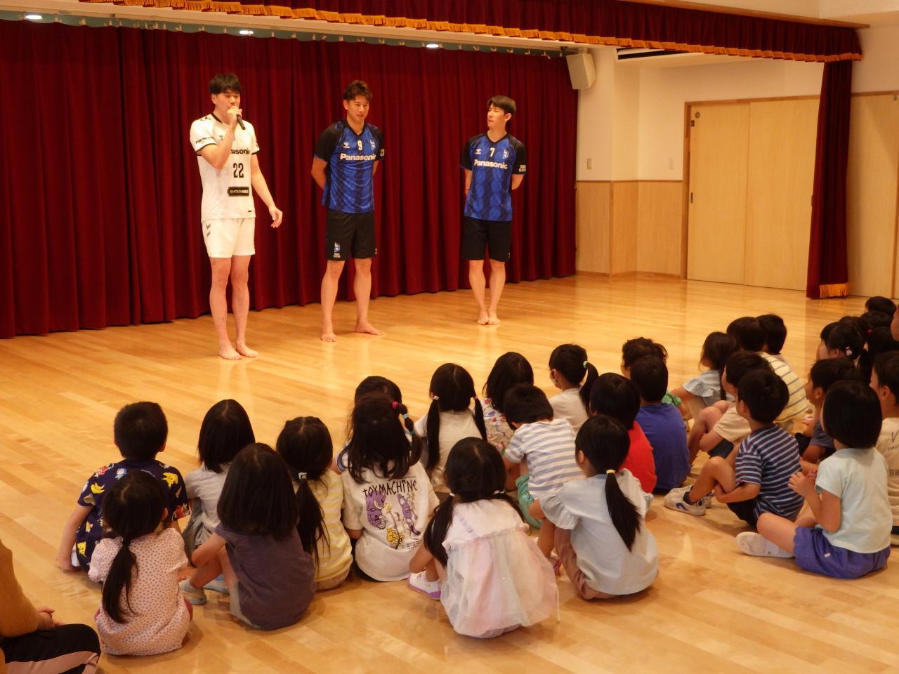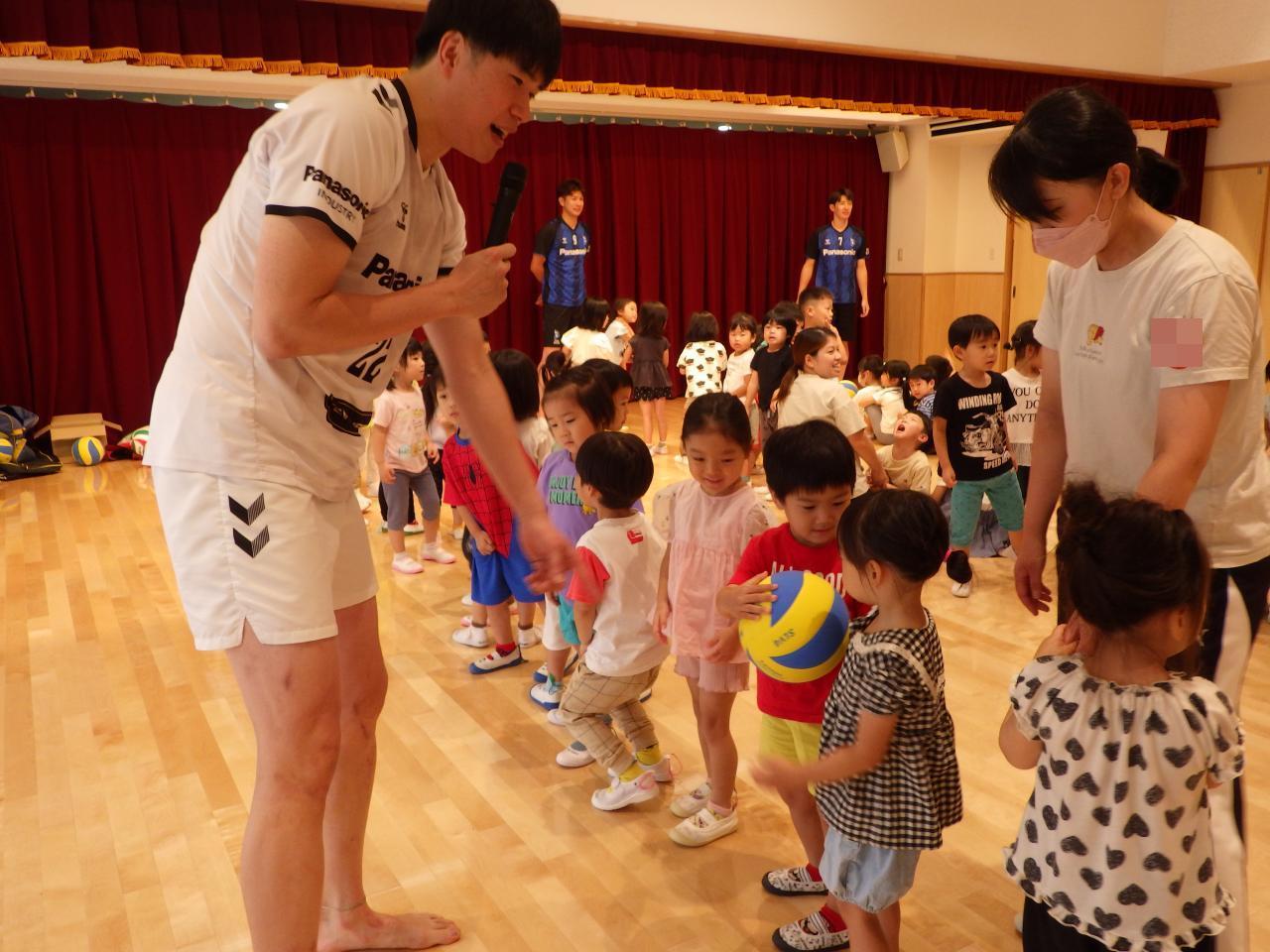 7/23(火) 枚方市をホームタウンとする、大阪ブルテオン(旧パナソニックパンサーズ)の選手とコーチが4名、阪保育園に来てくださいました✨。