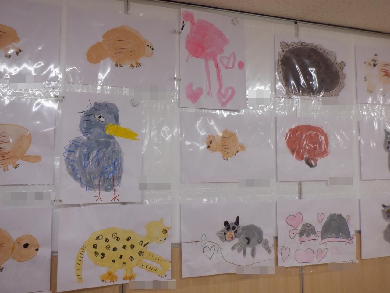 5歳児クラスの子どもたちは、楽しい絵画がを描きました。色とりどりの動物が今にも、飛び出してきそうです✨。