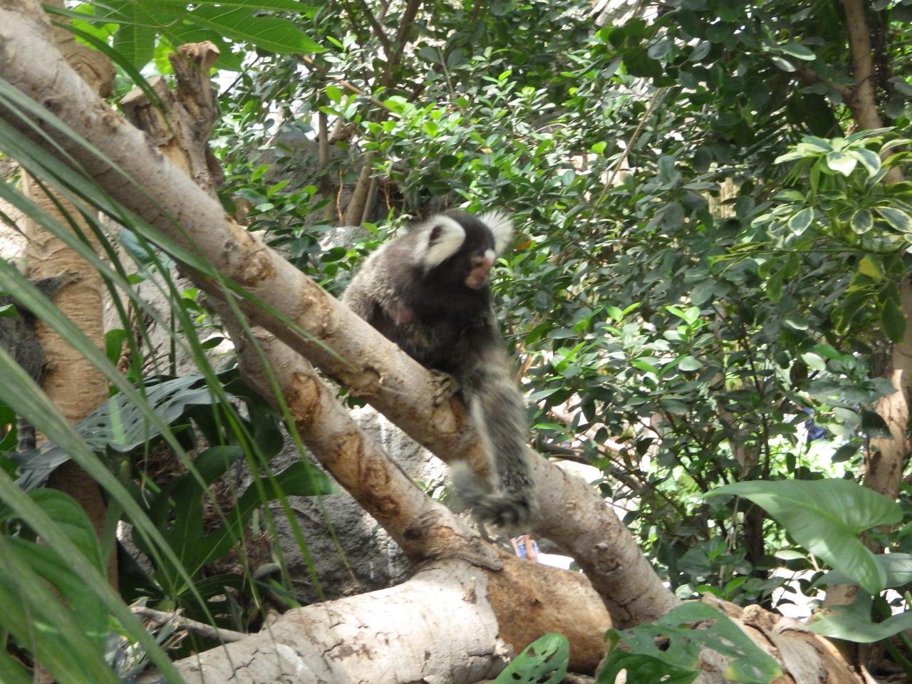 その後は園内を回りました。『熱帯の森』では上を見上げると「ナマケモノ」が木にぶら下がっていたり、下を見ると小鳥がちょこちょこ歩いていたり🐦木の枝には「コモンマーモセット」というかわいいお猿さんもいました🐵