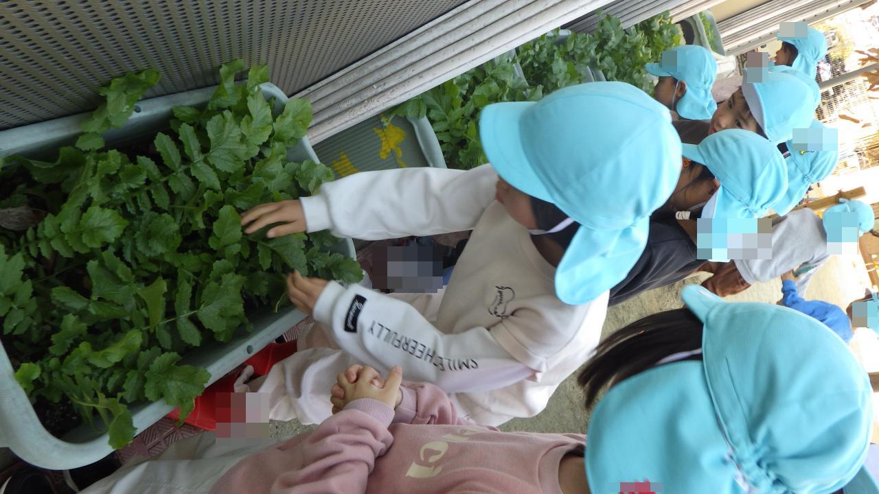 パーティー前日に、5歳児クラスの子どもたちが大根を収穫しました。昨年秋、園庭のプランターに種をまき、水をあげたり間引いたりと大切に育ててきた大根✨少し小さめではありましたが、土のなかからスルッと抜け、顔をのぞかせた大根に思わず「わ~❗」「抜けた💦」と歓声が上がりました🙌