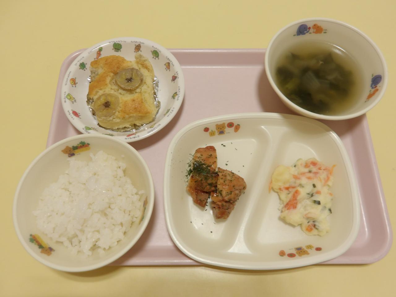 今日の誕生会のメニューです🙂。たくさんたべて、大きくなってね✨。