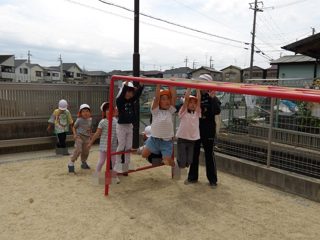 帰りに、牧野保育園に寄り道をし、園庭のうんていを楽しみました。