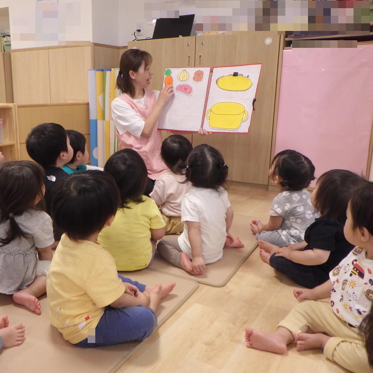 1歳児クラスでは「🍛カレーライスのうた🍛」のパネルシアターを楽しみました💕