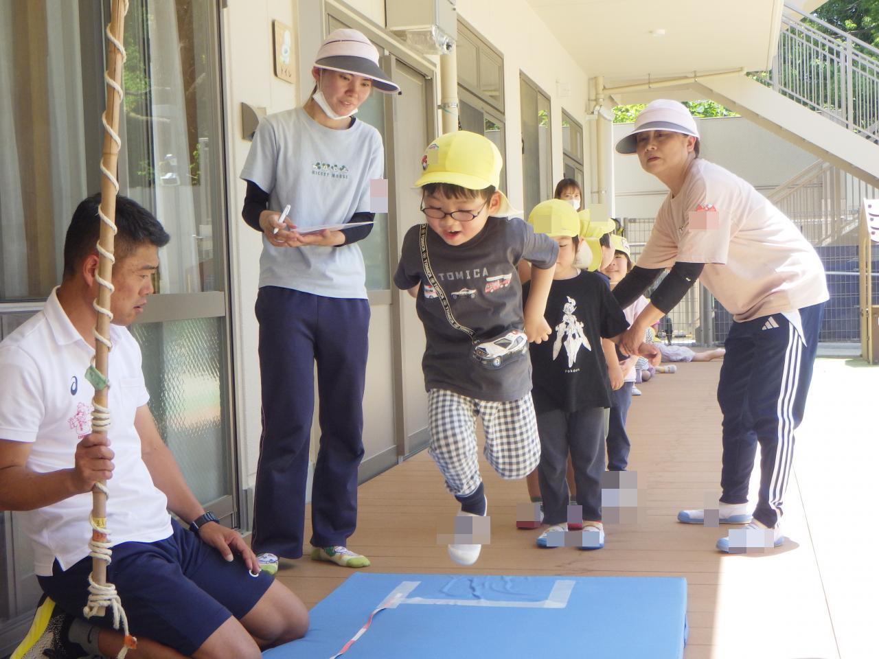 また、4、5歳児クラスは園庭で体力測定を行いました。