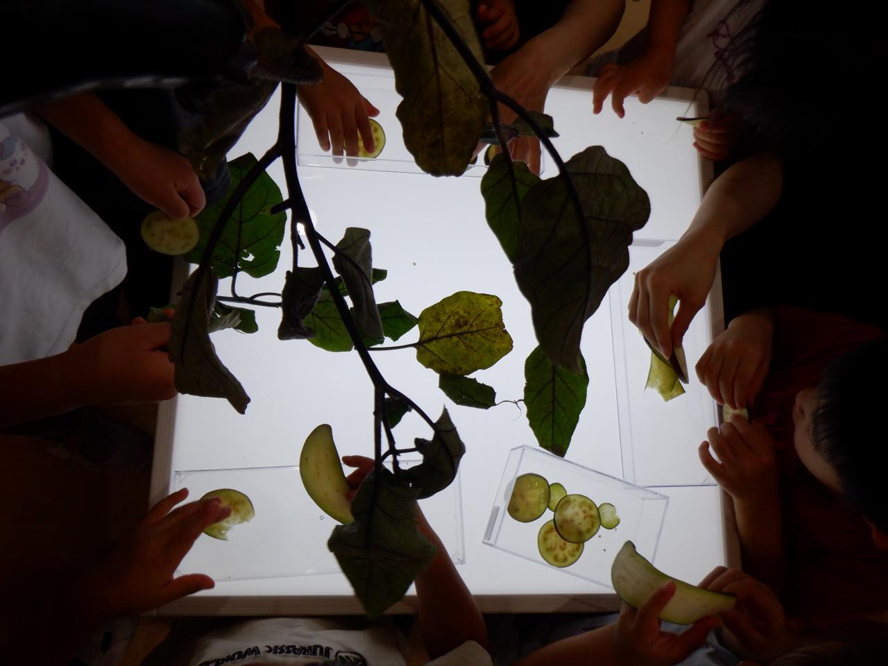「光る机」にカットしたナス🍆をのせてみると・・・