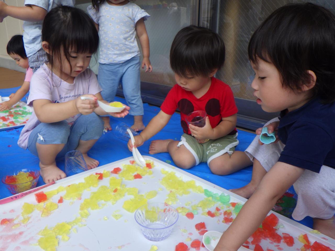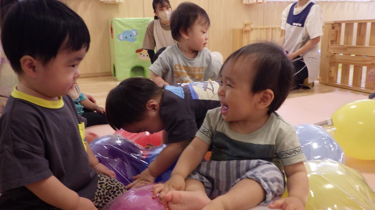 7月より水あそびやプールあそびが始まりました🐳。気温が35℃🌞を超える日が続いています。暑さ指数(WBGT)を測定し、熱中症に留意しながら夏ならではの様々なあそびを楽しんでいます😄