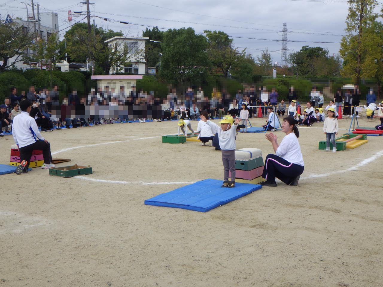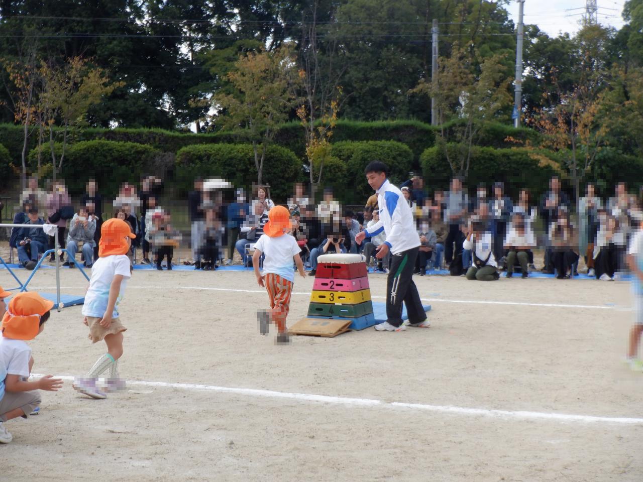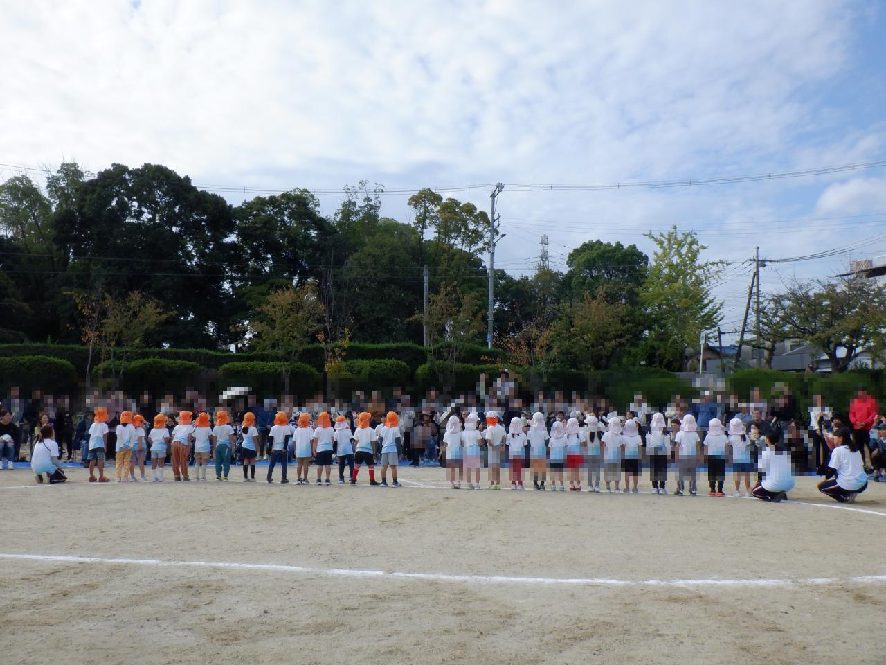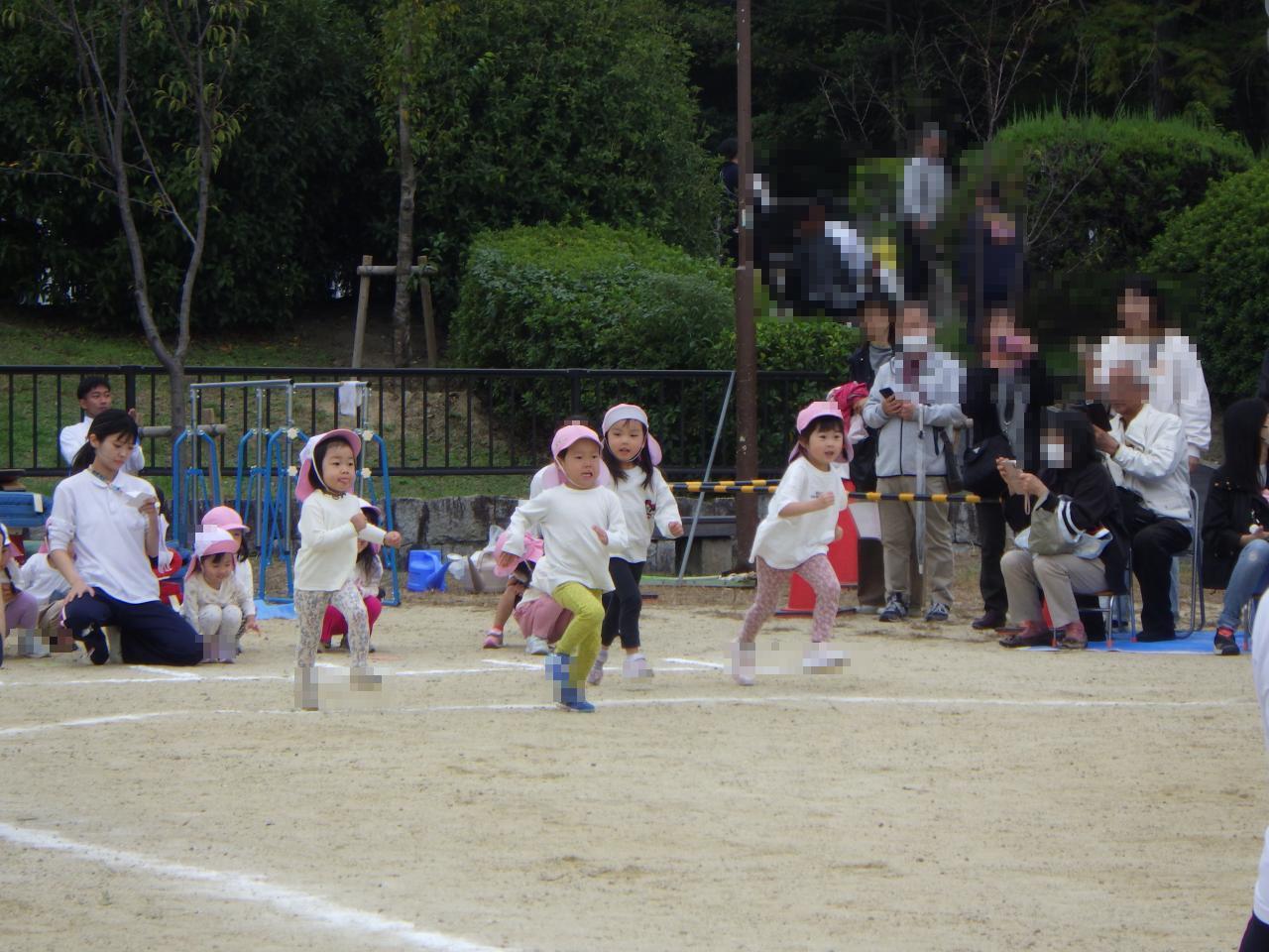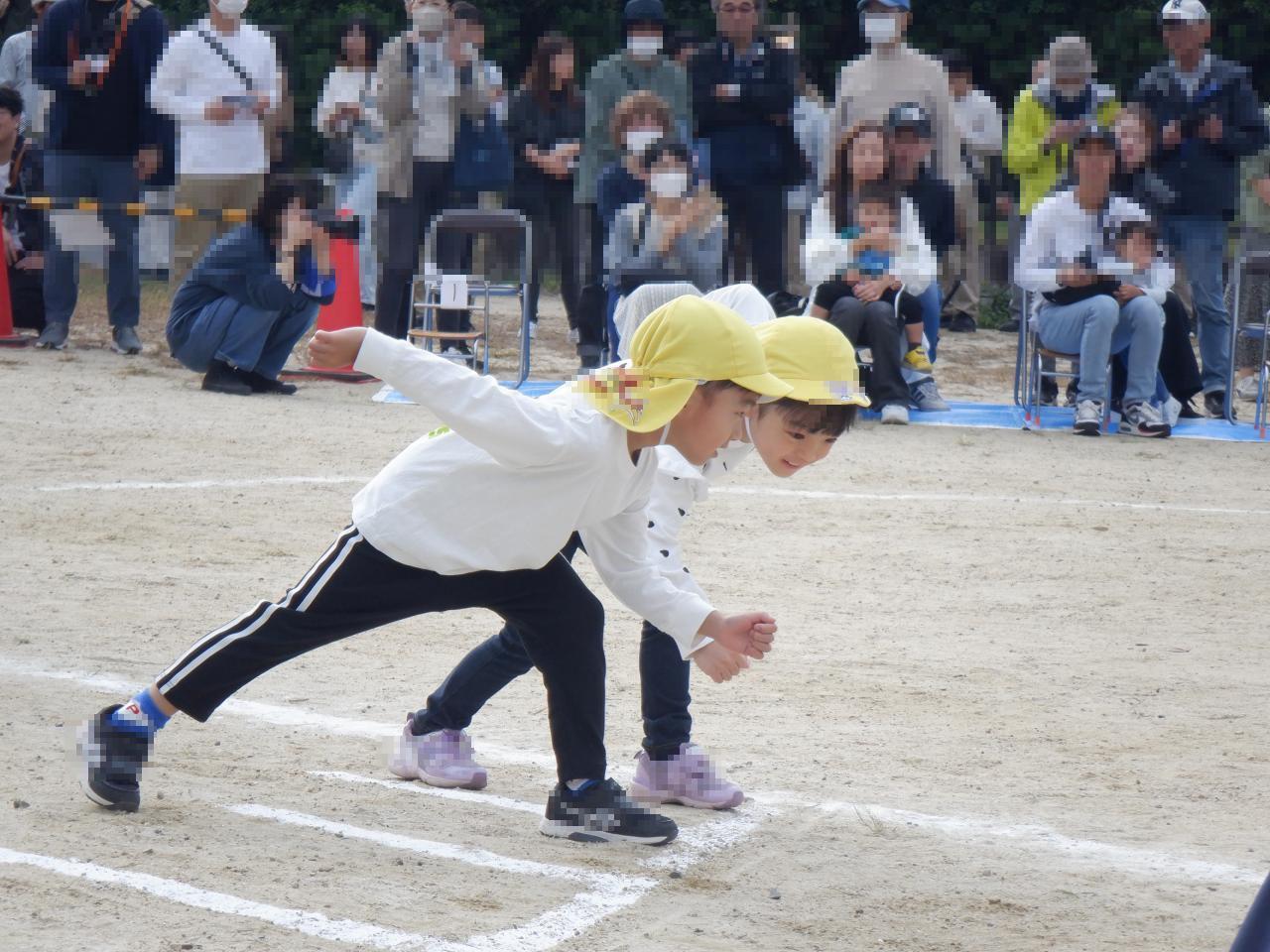 また、かけっこではトラックを半周走りました。スタートの「用意」では、足を半歩下げホイッスルの音と共に走り出す姿はとてもかっこ良かったです。