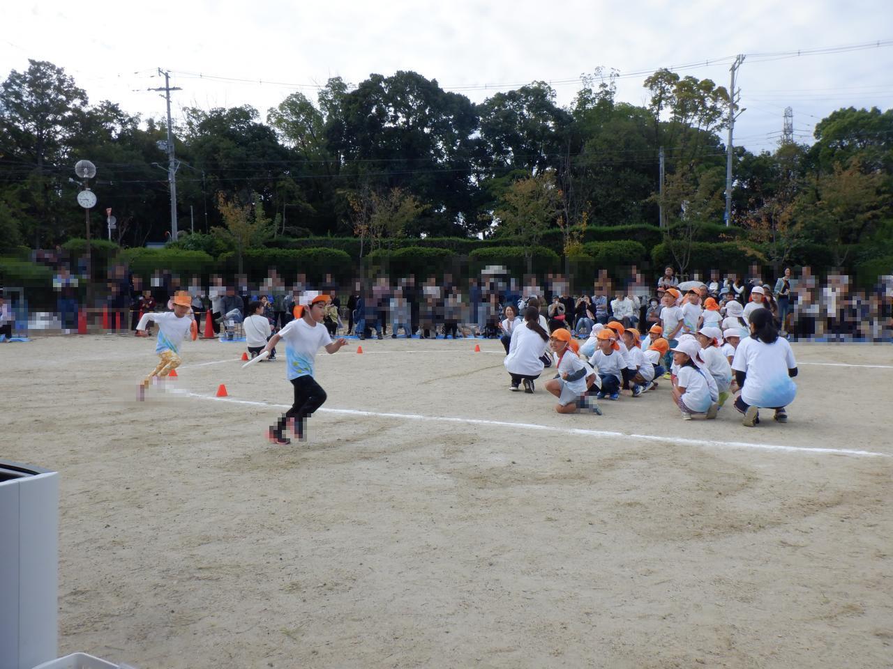 最後のリレーでは、一人ひとりバトンを次の友だちへつなぎ、最後のアンカーがみんなのきもちをのせてゴールしました。ゴールテープを最初に切るのはどちらのチームか、デッドヒートが続き最後までドキドキの戦いでした👏
